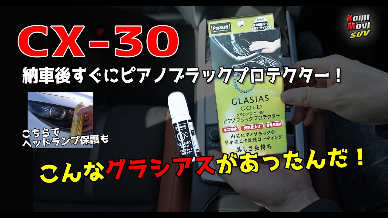 今回はCX-30 20S レトロスポーツエディションの納車翌日にピアノブラック専用のコーティング剤【グラシアスゴールドプロテクター】でピアノブラック部分のコーティング、そしてガラス系ボディコーティング剤【グラシアスゴールド】でヘッドランプとリアコンビランプをコーティングをしました。